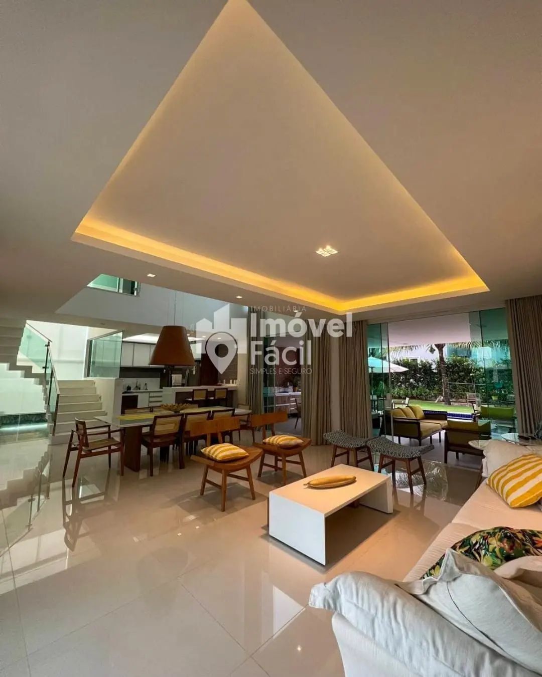 Pavimento térreo: Sala de estar e jantar integradas e com pé direito duplo, 1 suíte, área gourmet integrada, piscina, lavabo, área de serviço coberta.