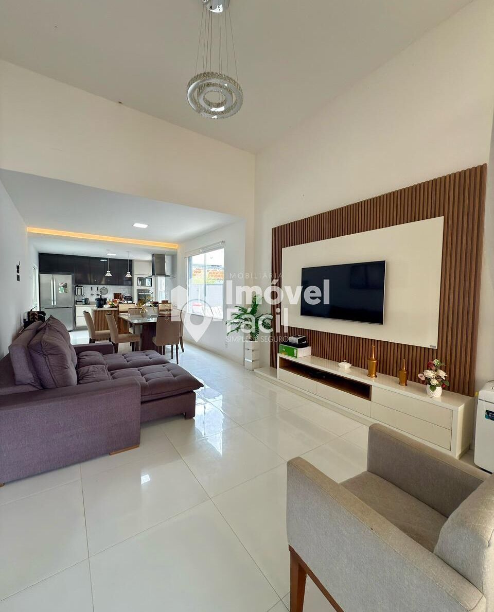 Casa térrea, com uma BELÍSSIMA FACHADA, com 3 quartos, sendo 1 suíte master com closet, todos os quartos com ar condicionado, banheiro social, cozinha interligada com área gourmet com churrasqueira, sala com pé direito alto, lavabo externo e área de serviço.