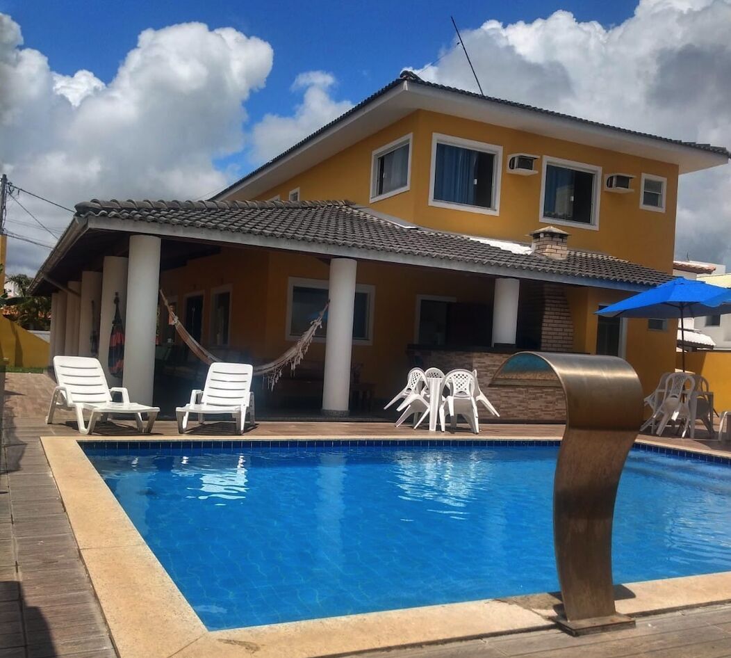 Sete suítes, piscina com hidro e cascata, pertinho da praia — e você compra com tudo dentro. Literalmente tudo.