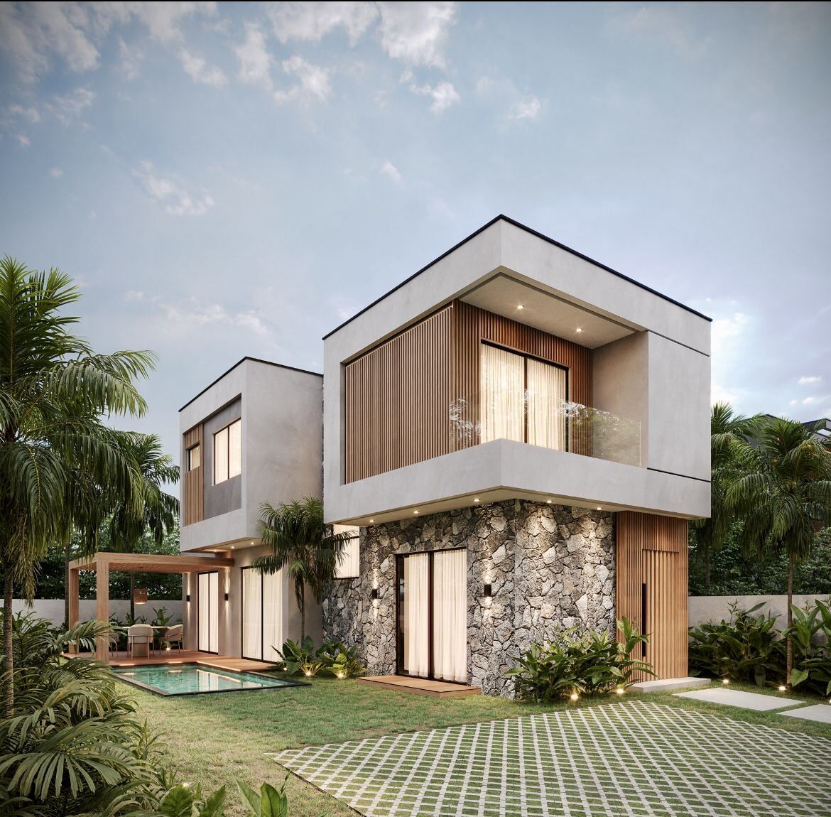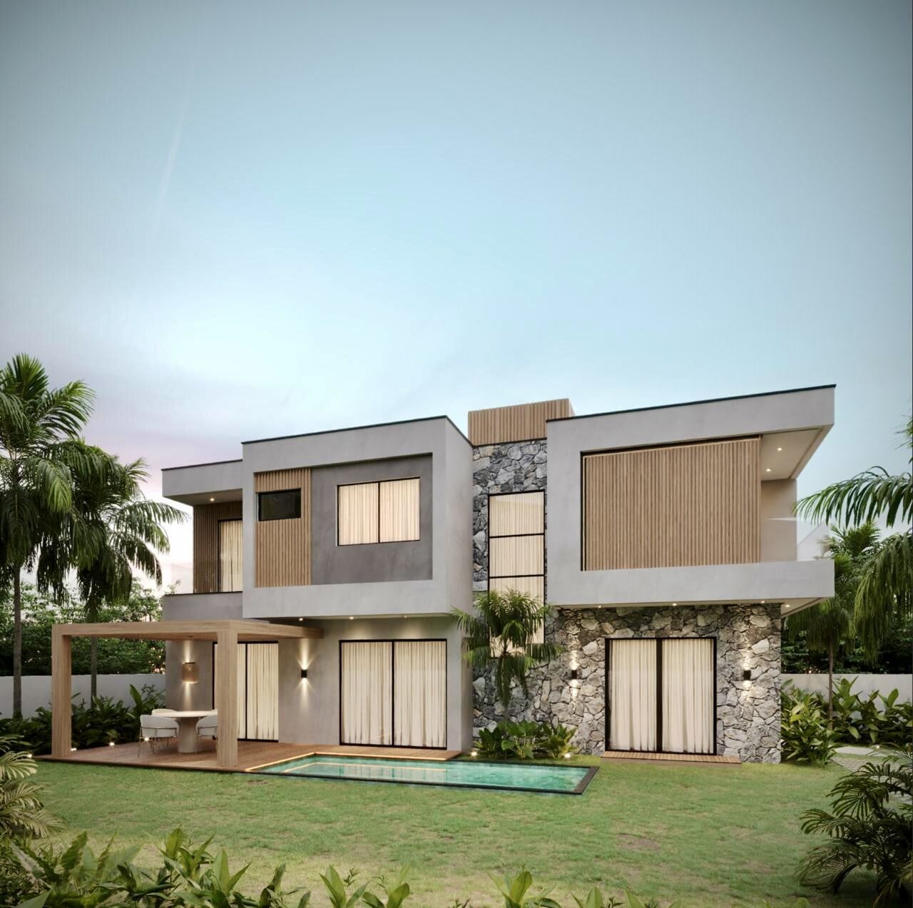 200m² de terreno, 135m² construídos com inteligência. Projeto funcional, execução caprichada.