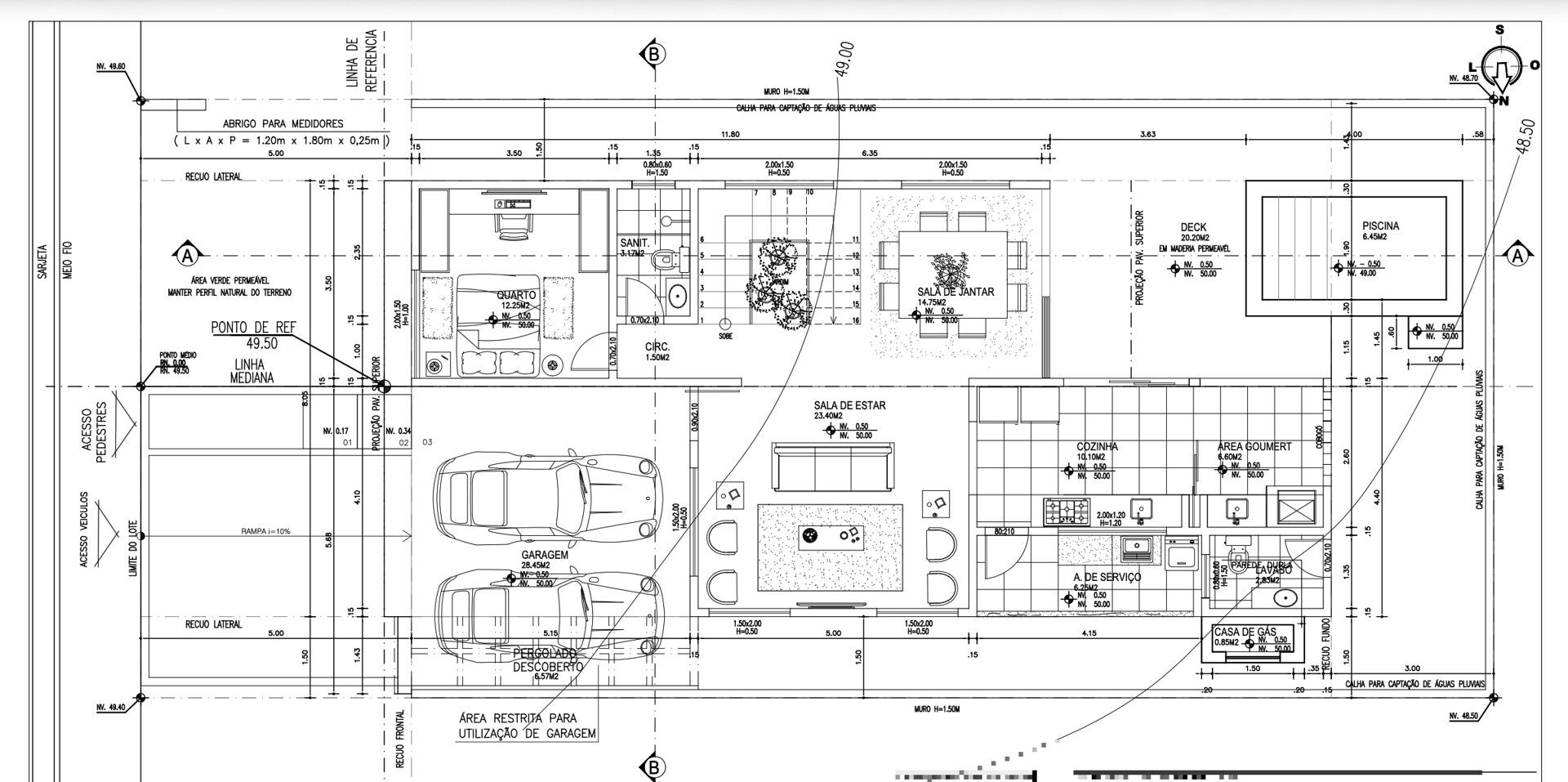 São 158m² de área construída, mais 20m² de deck e piscina de quase 6,5m². Projeto bem pensado, metragem bem aproveitada com uma área total dote de 276,51m2