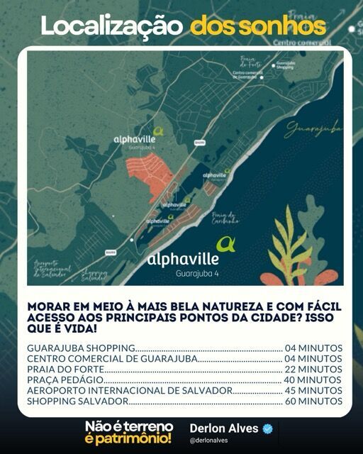 Alphaville Guarajuba 4 — O endereço mais desejado do Litoral Norte da Bahia. Lotes a partir de 420 m². Descontos de até 17%. Parcele em até 48x.
